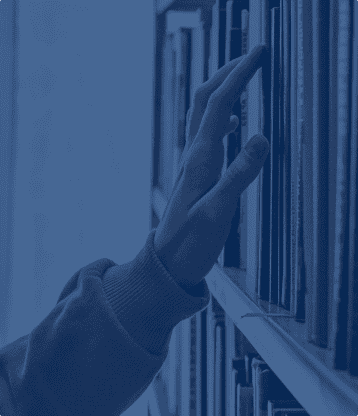 choosing a book from a bookshelf blue